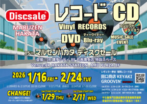 【出張販売(福岡)】『第15回 丸善博多店ディスクセール』●2026/01/16(金)〜 2026/02/24(火) ●JR博多シティ 8F 丸善博多店 特設スペース